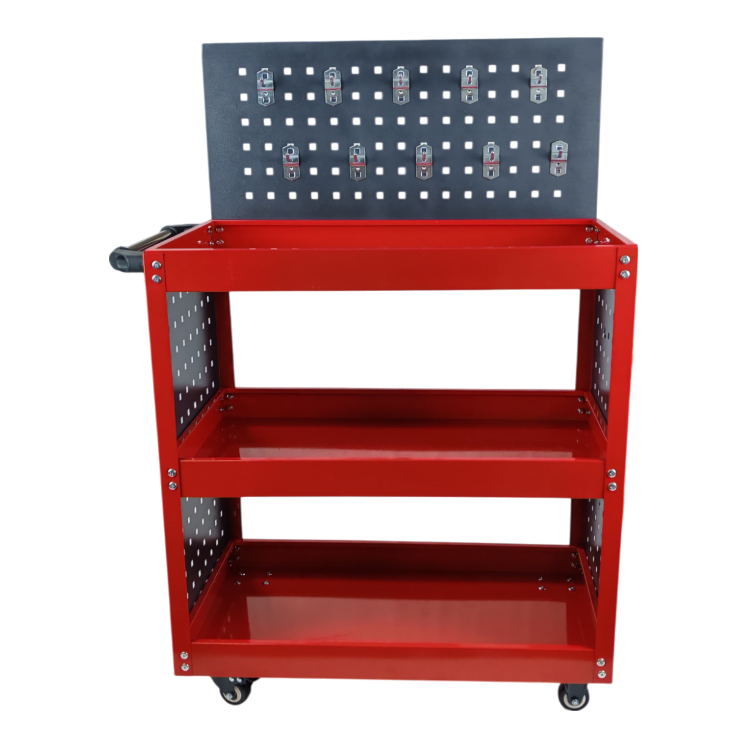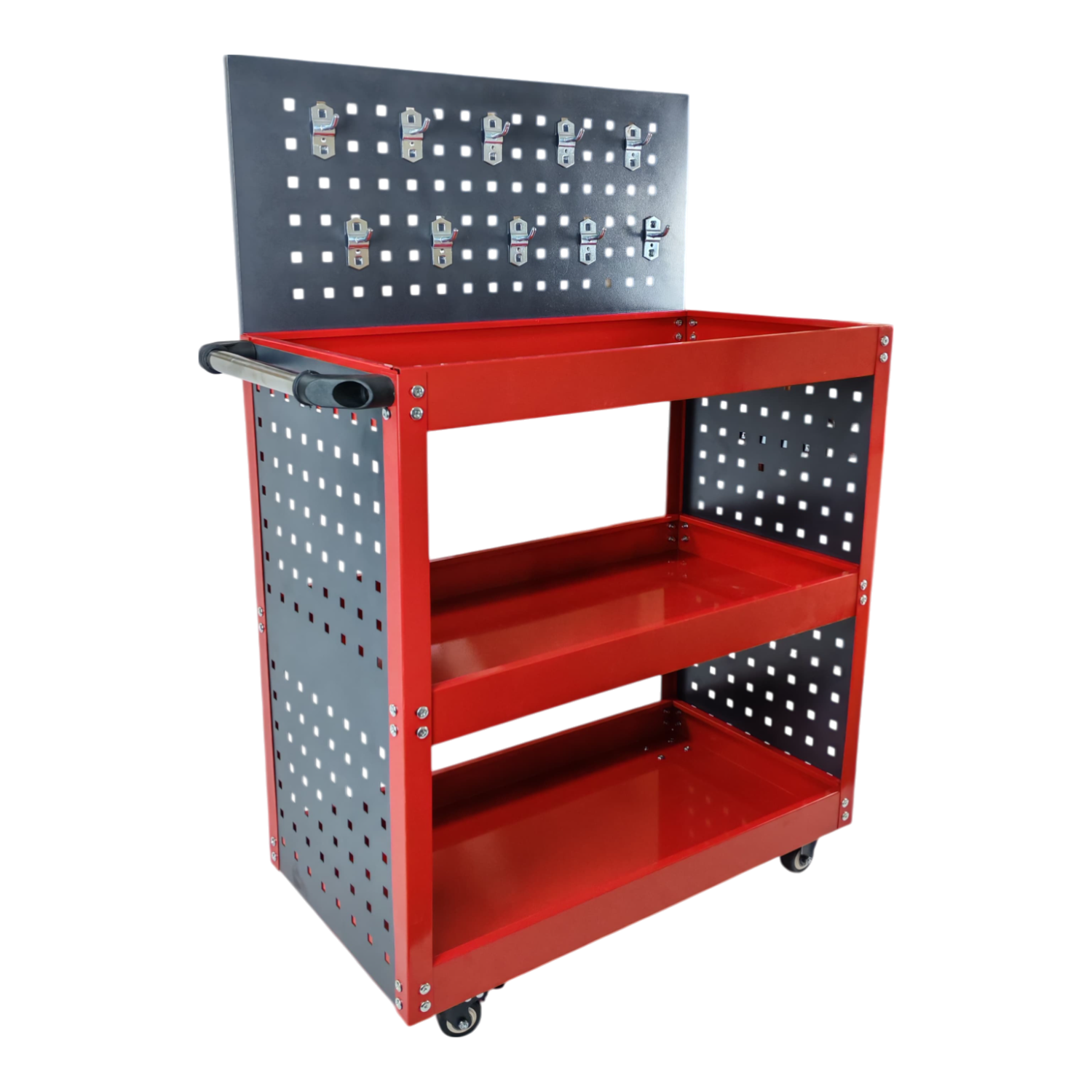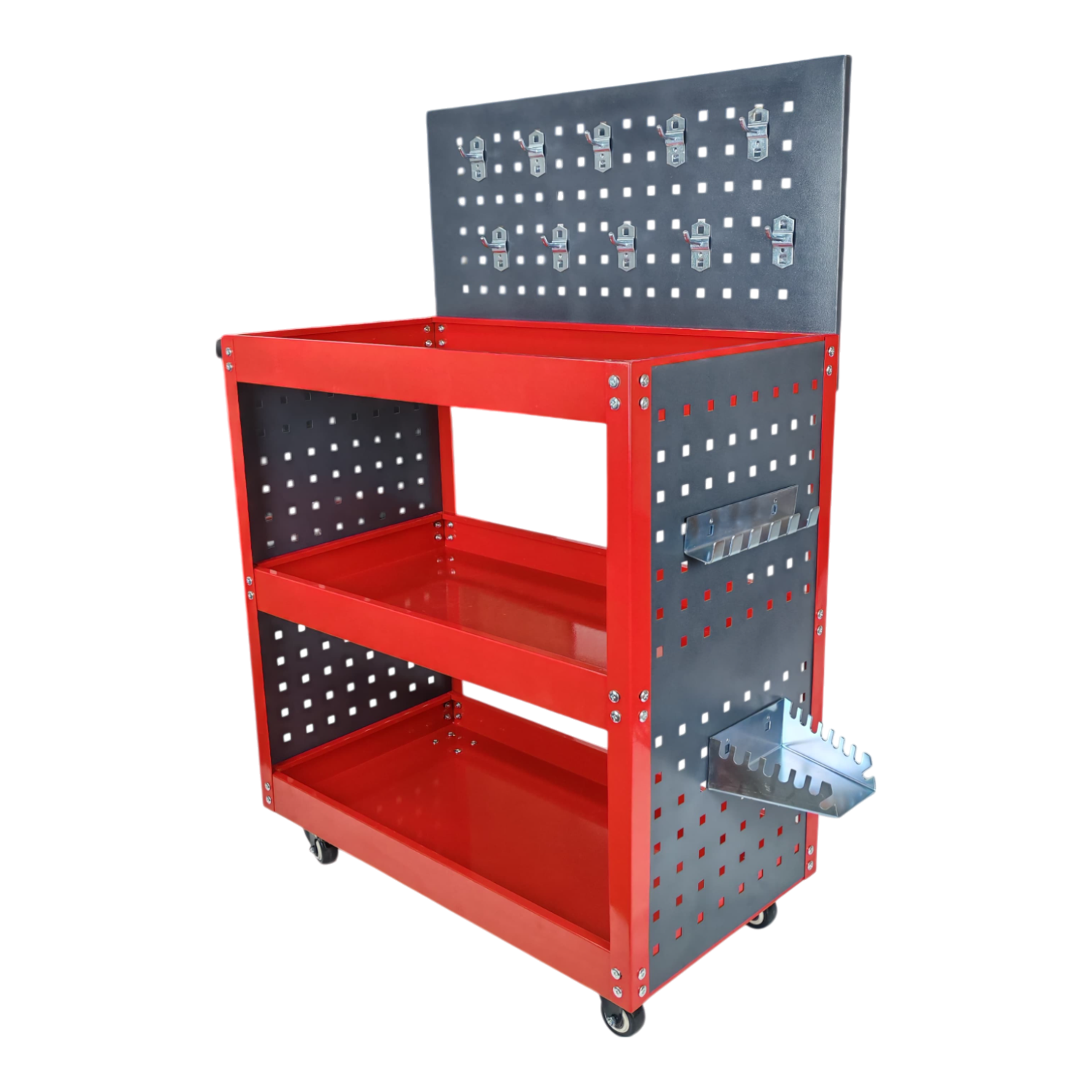 Panel lateral perforado con ganchos para organizar herramientas