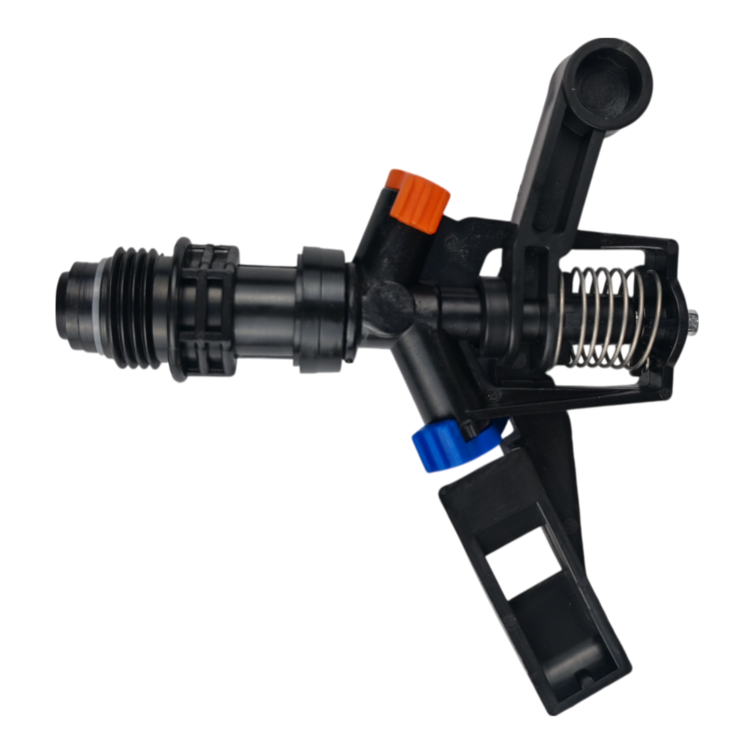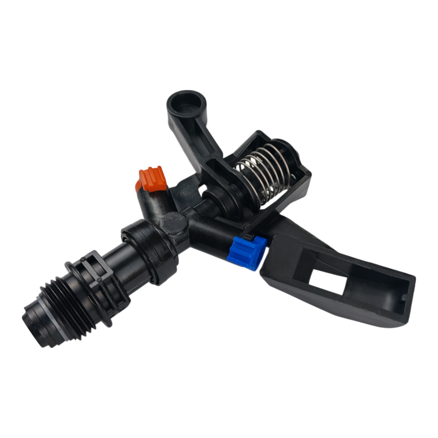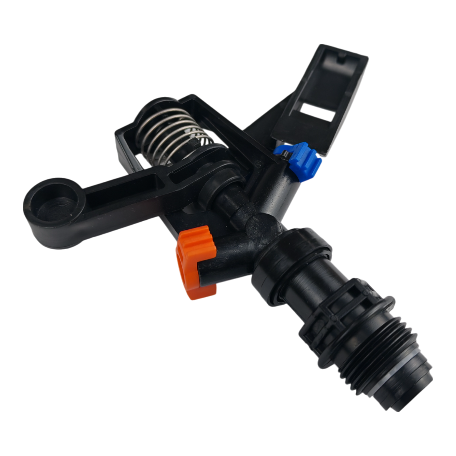 Es una boquilla de aspersor de jardín con brazo